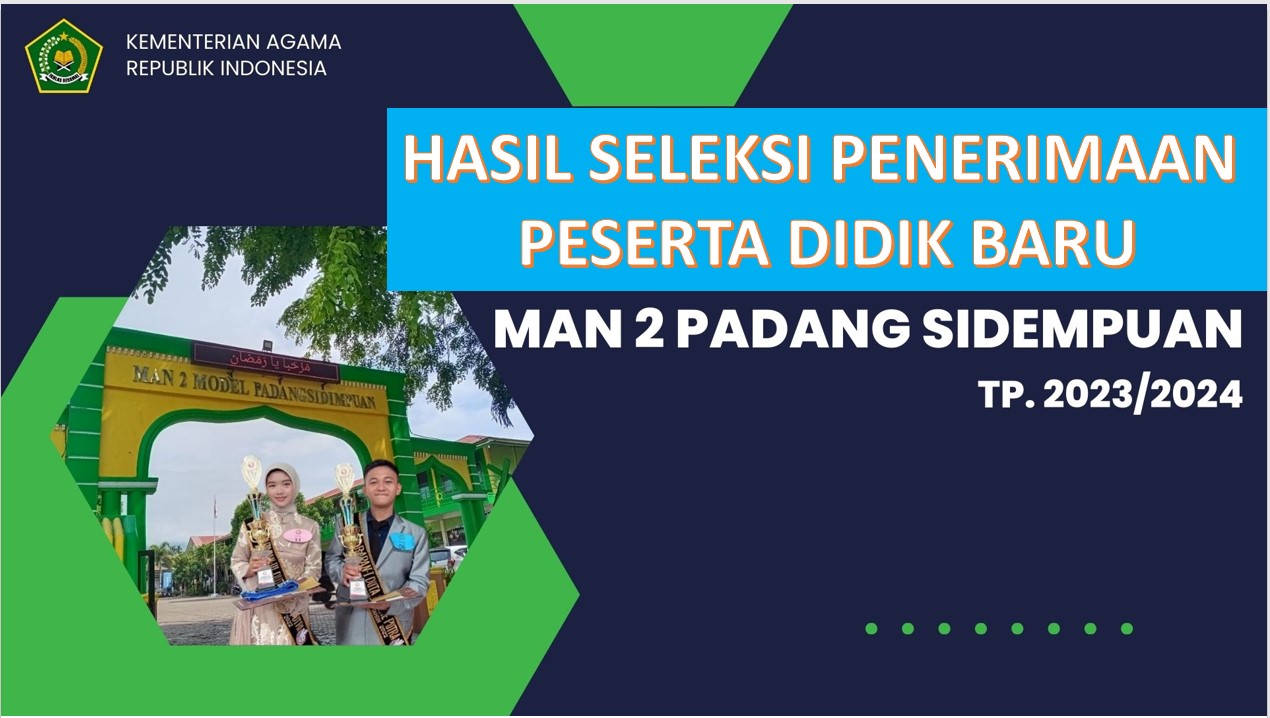PENGUMUMANHASIL SELEKSI PENERIMAAN PESERTA DIDIK BARU MADRASAH (PPDBM)MAN 2 PADANGSIDIMPUANTAHUN PELAJARAN 2025/2026 Assalamu’alaikum warahmatullahi wabarakatuh, Berdasarkan hasil seleksi PPDBM yang